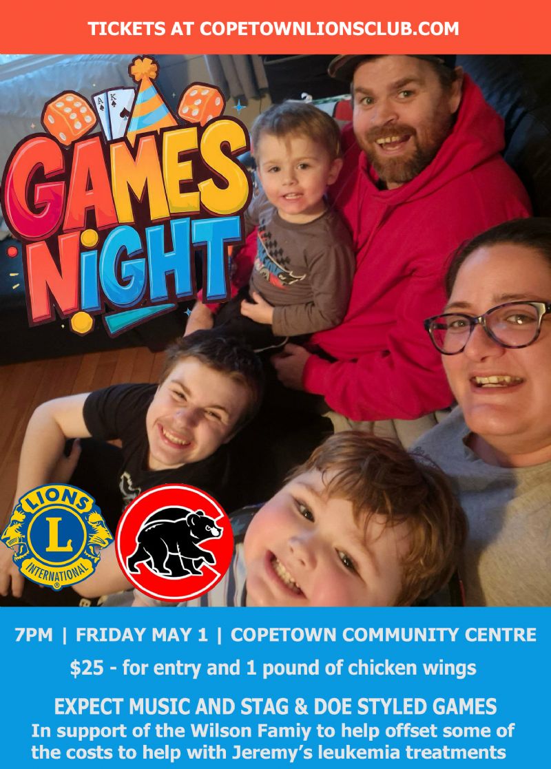 Friday May 1, 2026 Games Night In Support Of The Wilson Family |